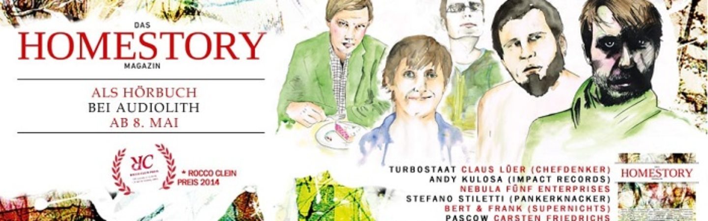 Audiolith ist hoch erfreut, euch DAS HOMESTORY MAGAZIN als Hörbuch zu präsentieren. Das erste Hörbuch EVER auf Audiolith! Aber da das Homestory Magazin 2014 den Rocco Klein Preis für Musikjournalismus gewonnen hat - und das vollkommen zurecht - haben wir uns dazu hinreißen lassen, diese wundervollen und skurillen Geschichten auch im Audioformat verfügbar zu machen. Die Erste davon mit Nagel (Muff Potter) gibt es schon jetzt publik auf Soundcloud.